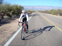Ich fühlte mich nach der heutigen Tour ein bisschen wie Glasnudeln in Hühnerbrühe nach 9.135 Minuten Garzeit. Nach 175 km (30 km/h) durch Kenia - kein Witz! - und einem richtigen kleinen Pässli bei Streckenhälfte war ich doch ziemlich platt. Aber auf eine schöne Art. Ich rede von dem Gefühl, das man hat, wenn man weiss, was man geschafft hat. Die Platte 4 Meilen vor dem Ziel hätte da nicht sein müssen. Erstaunlich, dass es erst am drittletzten Trainingstag passierte, denn wir fuhren zweifelsohne über Hunderte von Glasscherben über die ganzen 2 Wochen hier im Grossraum Tucson. Knirsch, Pffffffffffff.............